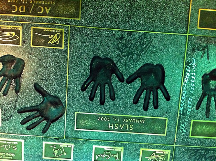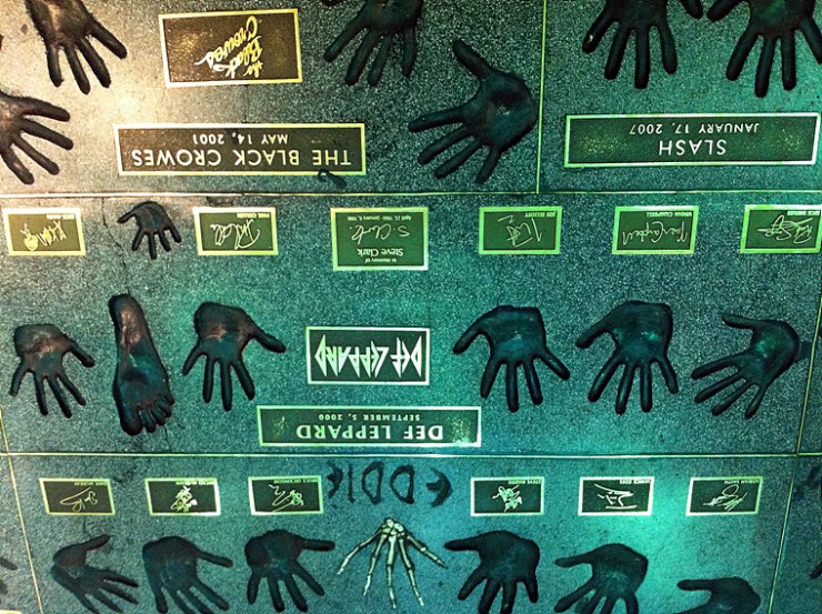 매장 앞에는 전설적인 슈퍼 뮤지션들의 손바닥 지장과 사인들이 즐비해서 위용을 자랑합니다. (역시 헐리우드 거리라...)